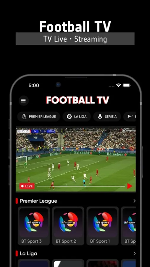 You can watch all football matches of all country leagues, Europe, UK, USA Sport, Europa League, Champions League, Asian Sport and much more on your mobile device.