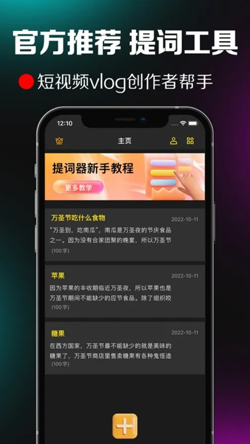 提词器是一款短视频创作者都在使用的提词神器,有了这个软件之后再也不用怕台词长记不住了,可以让短视频创作者专注在视频内容创作上,我们提供了应用内相机全屏提词、悬浮窗提词两种模式,可配置提示台词颜色、字体大小、滚动速度等等配置。