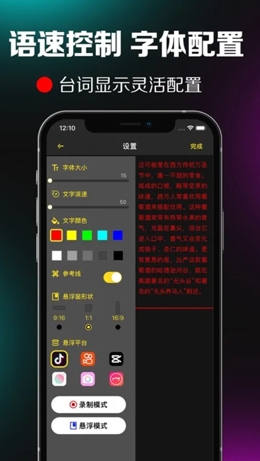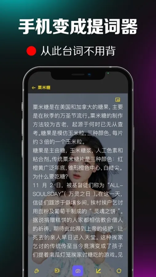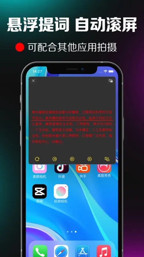 2、录制模式,打开应用内置相机,相机全屏提词。
