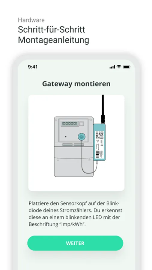 Step by step you will be shown with pictures and text how to mount your GATEWAY on the electricity meter.