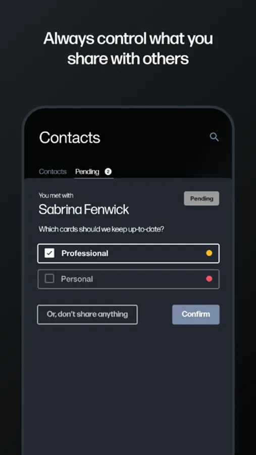 - Control and manage privacy settings for each persona after sharing your details