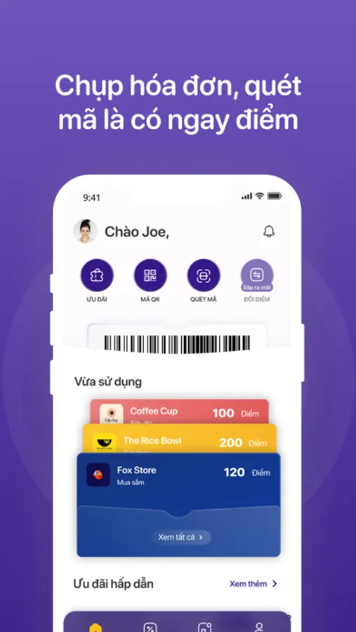 2.Tích điểm bằng mã QR, barcode.