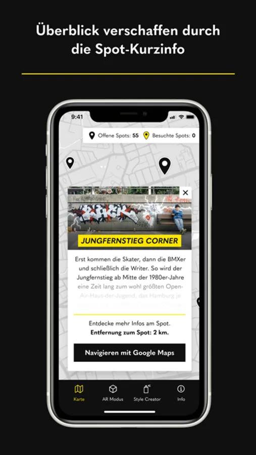 Get an overview of the distribution and brief info about the 55 Spots on the map