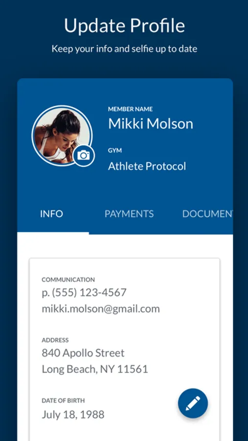 For members of Athlete Protocol to reserve their place in a class, sign up for gym events, and general account management like updating headshots and credit card on file.