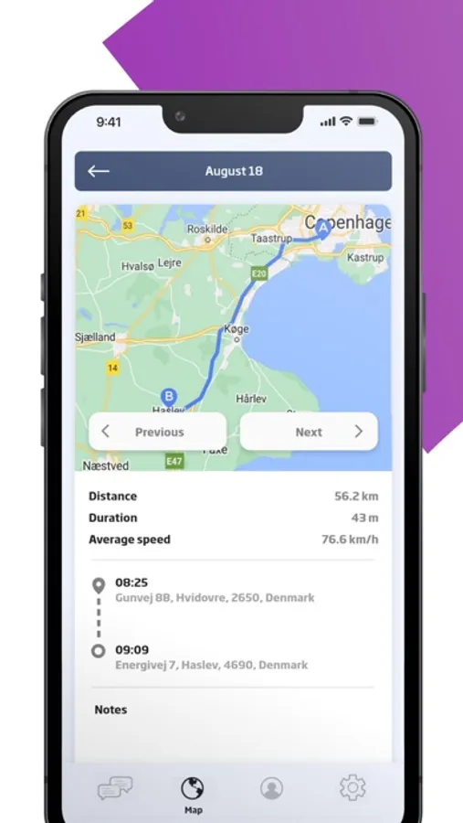 Simply categorize your trips and manage your driving logbook from the app. Each driver or fleet manager can categorize the trips and add relevant notes.