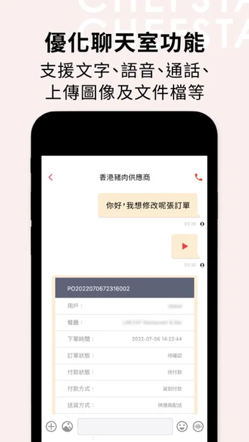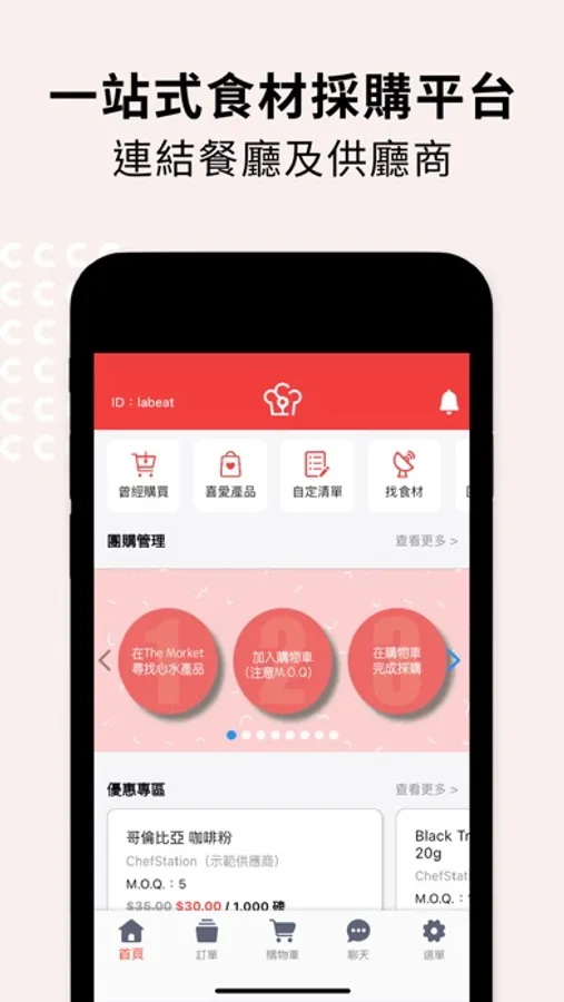 ChefStation 為香港首個B2B綫上食材採購平台,專門連接食材供應商及各類餐廳。餐廳可以透過平台,以最快最便捷的方法搜尋最合適你餐廳使用的食材;享受供應商定時推出的產品折扣及優惠 ;比較同類產品價格和質量;索取食材樣本,並通過平台直接訂購,將平常繁複的下單流程簡單化,有效節省營運開支及時間。