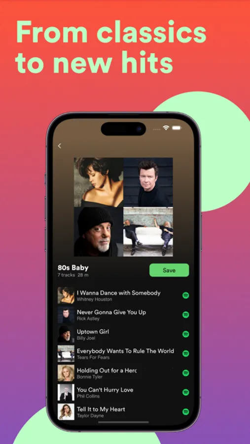 Use single filters or combine them and your playlist will be created. Name it and save on your Spotify account.