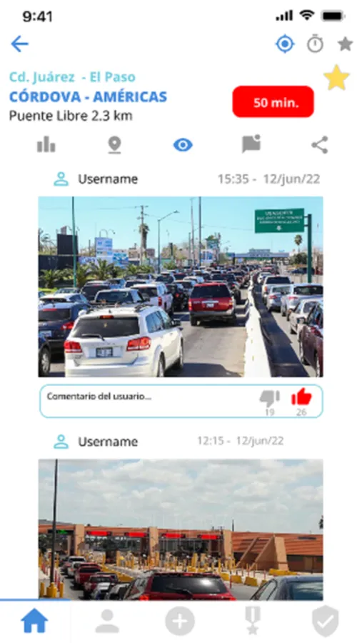 Crear tu cuenta es fácil y gratis, tendrás acceso a todos los reportes de los puntos de cruce en la frontera, al igual que crear reportes en tiempo real, comunicarte con otros usuarios, y obtener el seguro necesario para ti y tu vehículo antes de viajar.