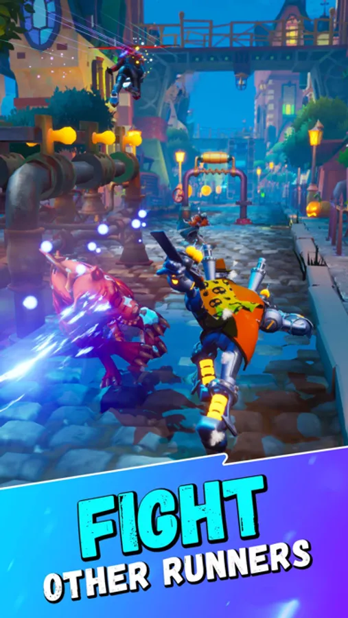 Play-AND-Earn by mastering your character and beating your opponents in intense, skill-based 1v1v1 runner battles.