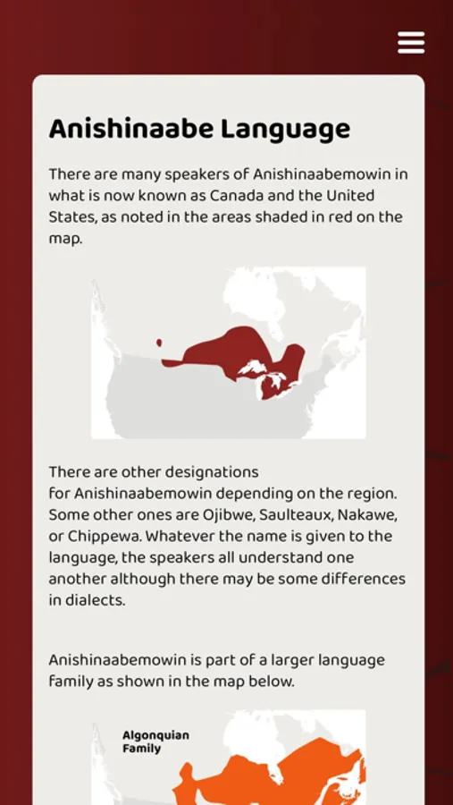 This app features words and phrases in the Ojibwe language that can be used in a variety of contexts: At School, In the Classroom, In the City, At Home and On the Land. The app also features songs and reflections from Elders about the deeper meaning of certain Anishinaabemowin words and phrases. This app can be used alongside the resource Giga-ganoonidimin Miinawaa! We will talk together again! Anishinaabemowin Dictionary for Students and Families.