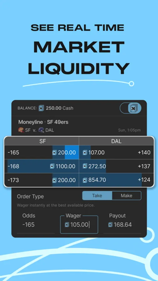 Trade on NFL, NBA, MLB, EPL, UFC, and more with player props, straights, parlays, and the best live odds for a chance to win real cash prizes.