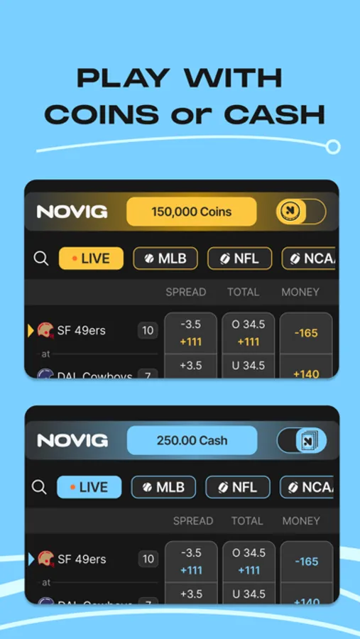 There is no real money gaming offered in this app and it is intended only for entertainment purposes. Novig offers only a simulated gaming experience intended for a 21+ audience. Practice or success at social sports gaming does not imply future success at real money gaming.