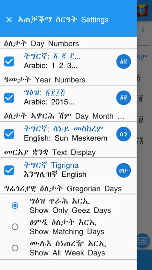 * Choose between Arabic or Geez Numerals for Days of Month
