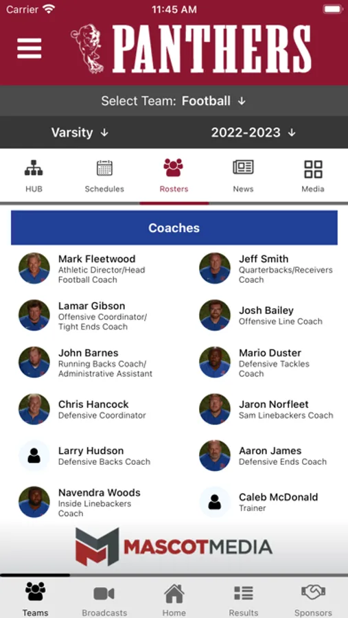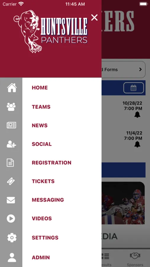 -Supporters: Special Thanks to local boosters and supporters of Huntsville Panthers Athletics with a directory including website and in-app calling.