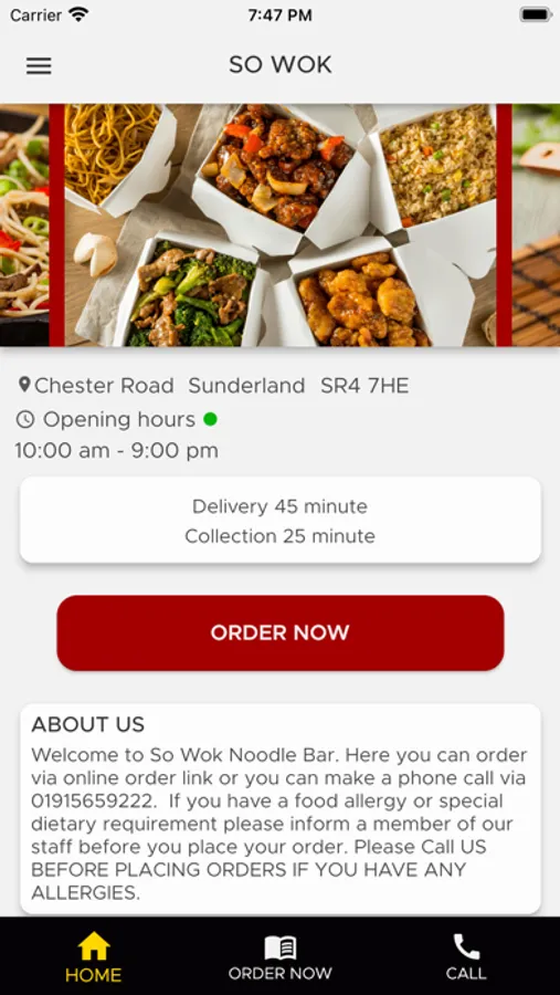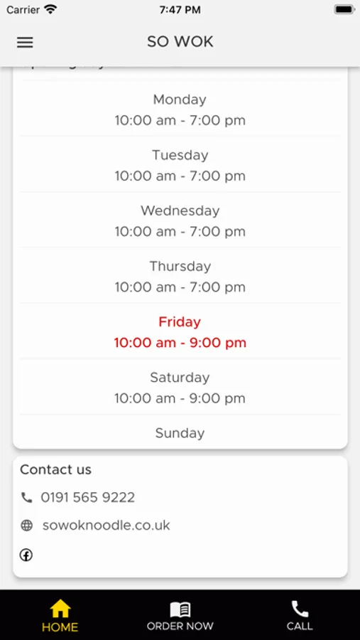 Welcome to So Wok Noodle Bar. Here you can order via online order link or you can make a phone call via 01915659222.