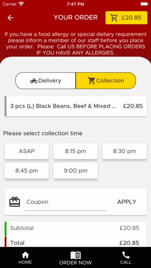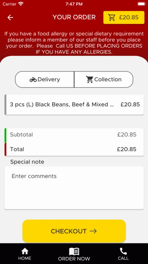 If you have a food allergy or special dietary requirement please inform a member of our staff before you place your order. Please Call US BEFORE PLACING ORDERS IF YOU HAVE ANY ALLERGIES.