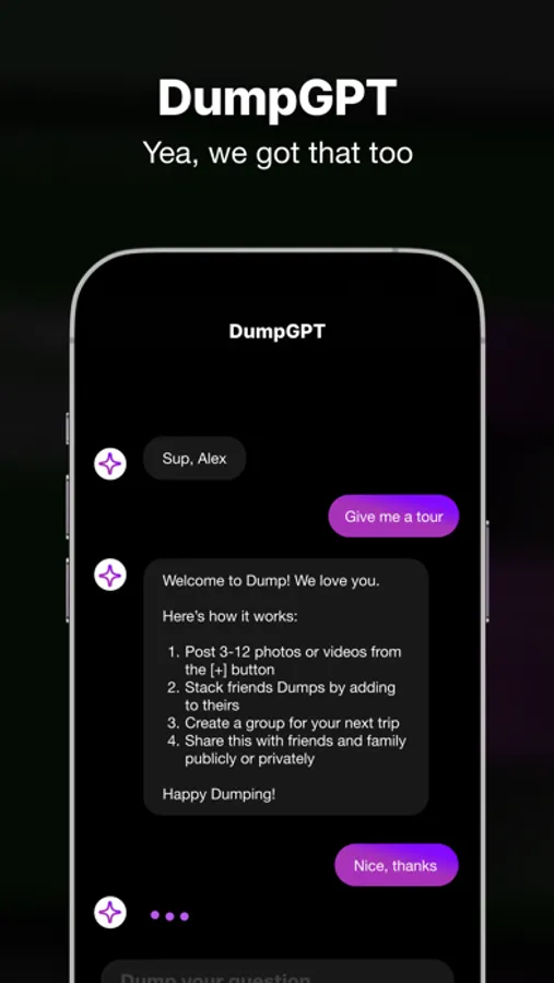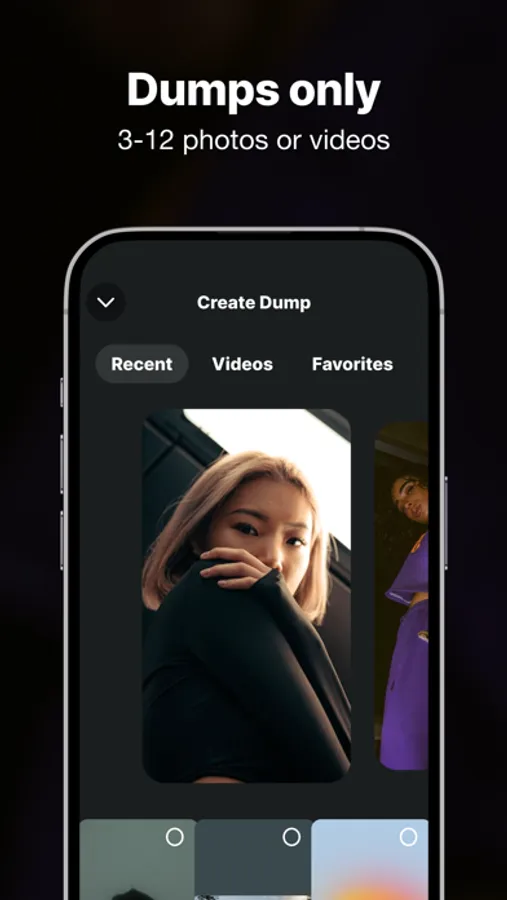 Dump is the post whatever-you-want whenever-you-want in mini albums affectionately called “Dumps” — 3 to 12 photos or videos per post. Tell a story — or don’t, we’re not your parents. No public likes & follows, influencing, social causes (no matter how noble), or politics… save it for twitter and thanksgiving dinner. Dump in peace