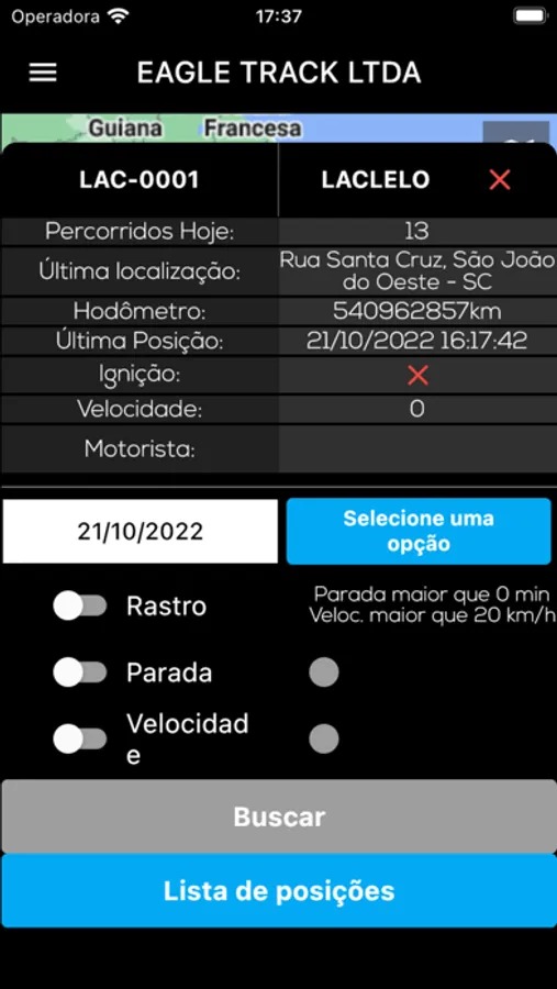 Aplicativo de monitoramento de veículos para uso exclusivo de clientes da Eagle Track.