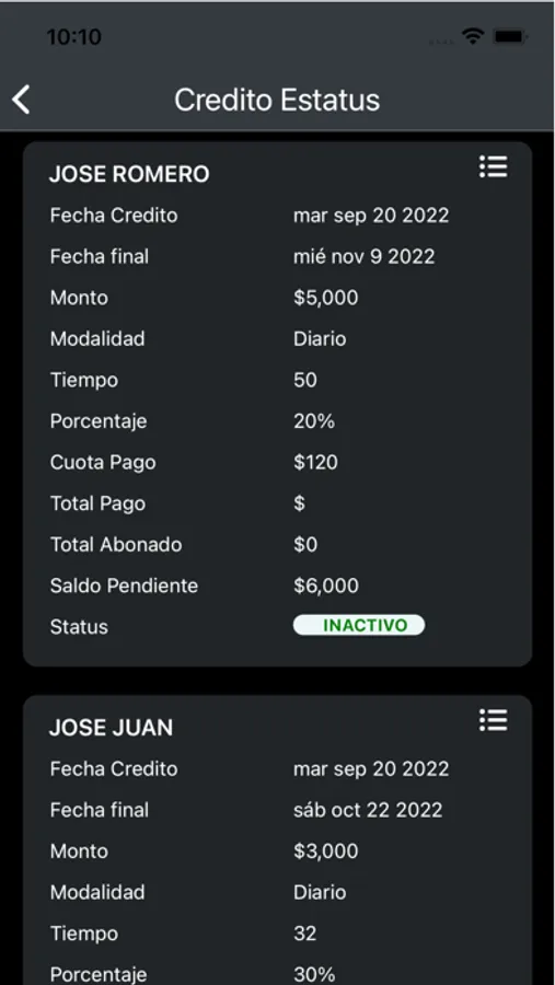 • Plataforma sencilla y segura para administrar los créditos brindados