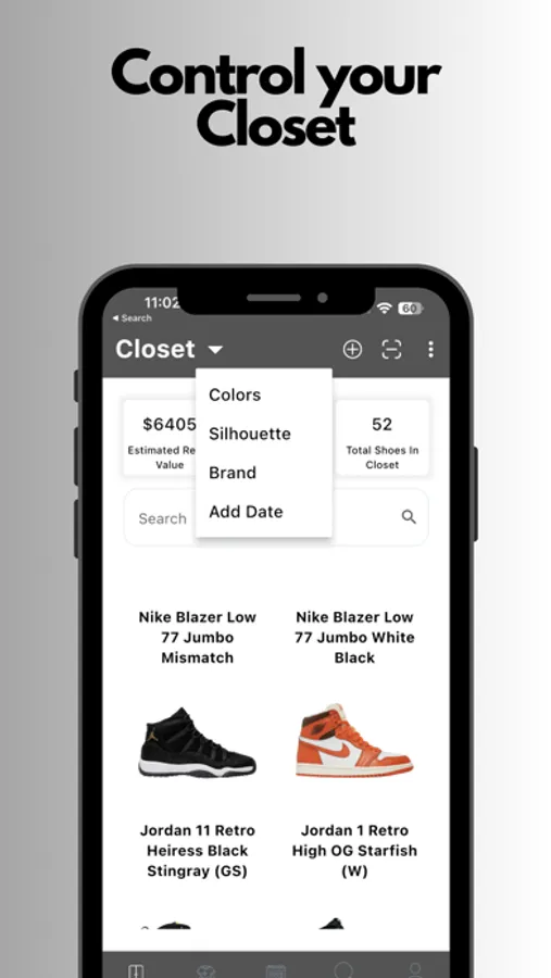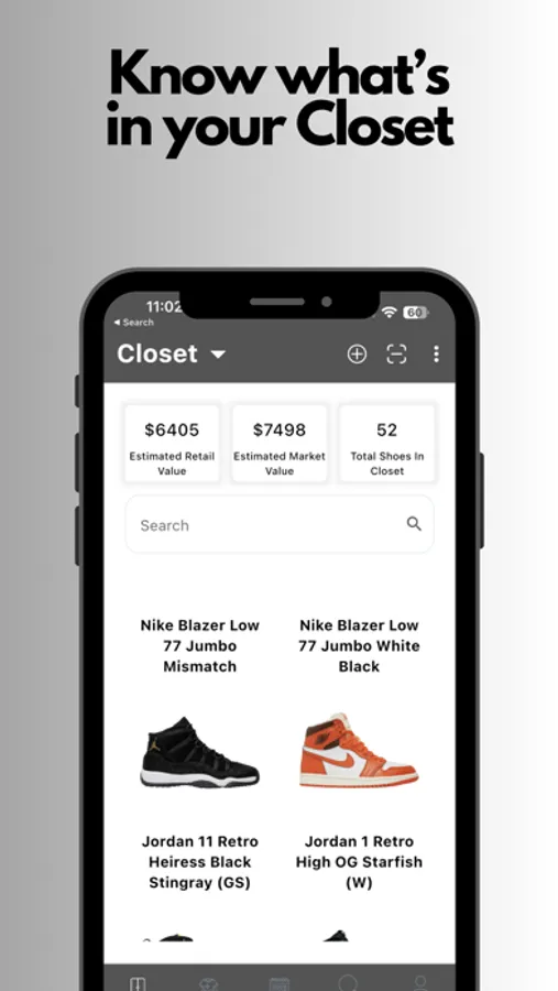 -Search through our database or use the barcode scanner to add shoes