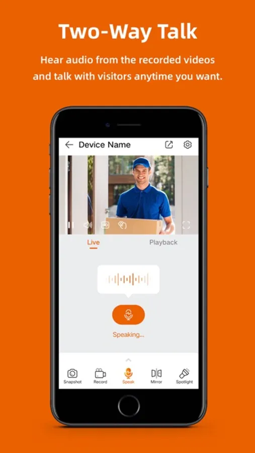 6. Interact with your family members or warn intruders with the two-way talk.