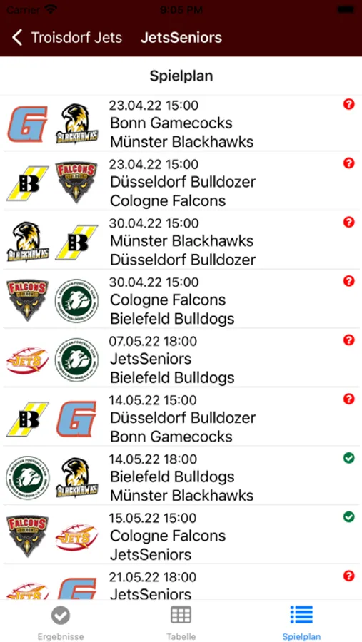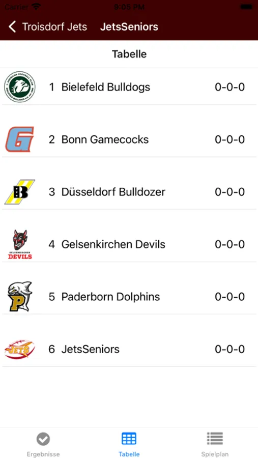 This app shows results, table and the rest of the season schedule for all football teams of AFC Troisdorf-Jets e.V.