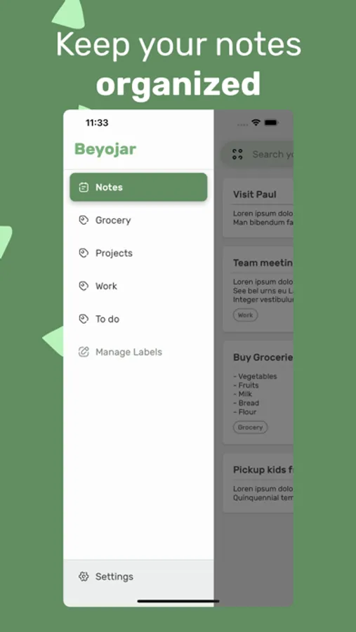 - Keep your notes organized with labels and colors