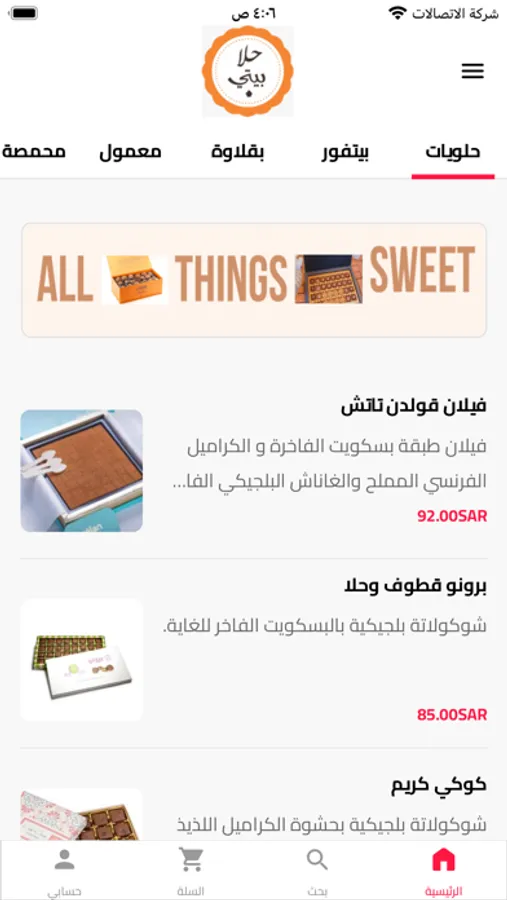 حلا بيتي للحلويات ودعم الأسر المنتجة وركن خاص للمنتجات الشعبية وبيع الشوكلاتة