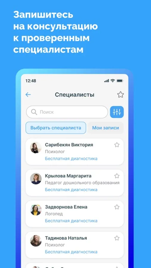 — Диагностику развития ребенка от 2 месяцев до 7 лет