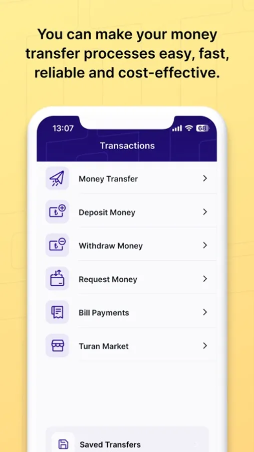 - You can transfer money 24/7 to another Turan account or to a phone number.