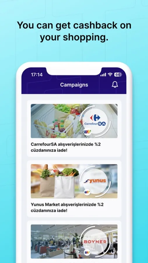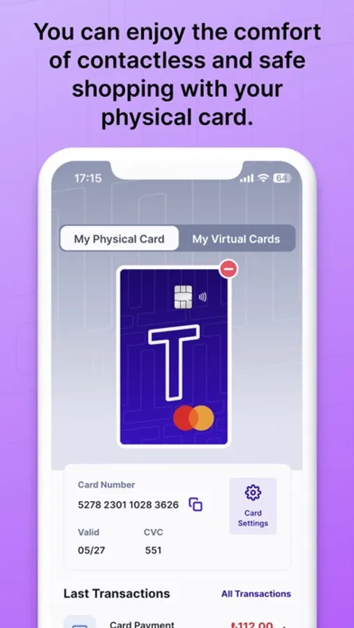 - You can enjoy the comfort of contactless and safe shopping with your physical card.