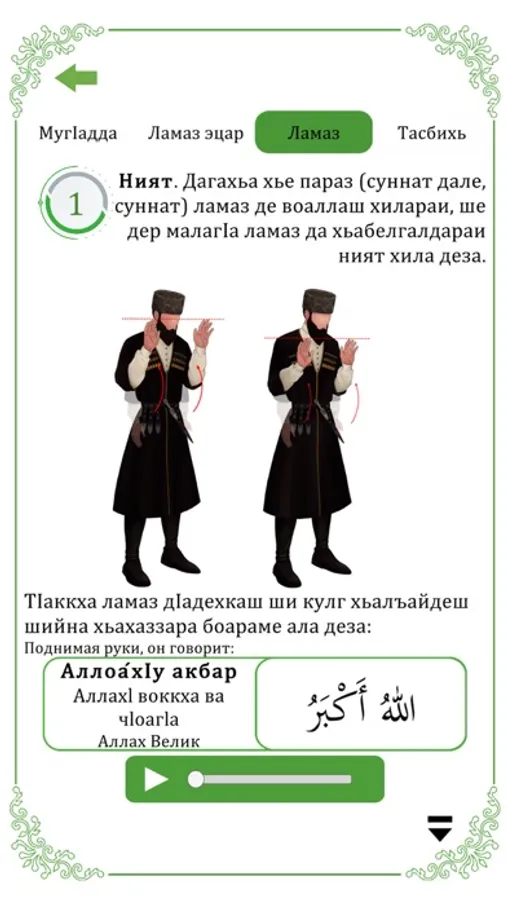 Учебное пособие для обучения совершения намазу на двух вайнахских языках.