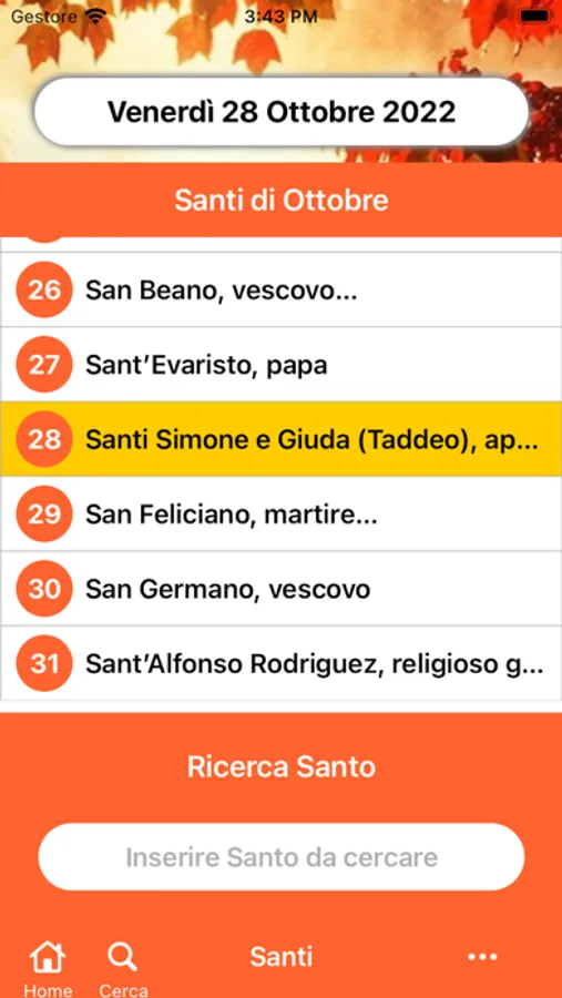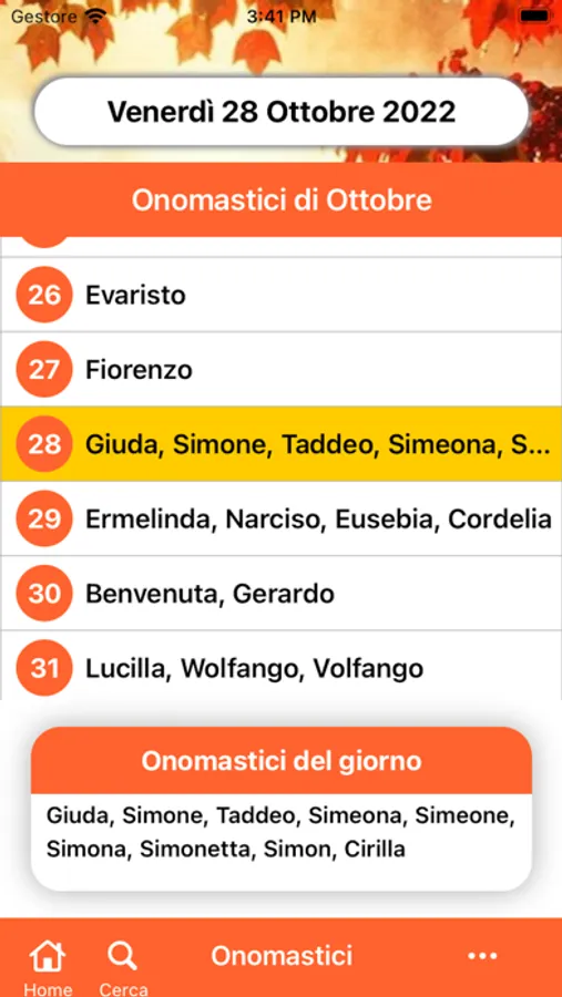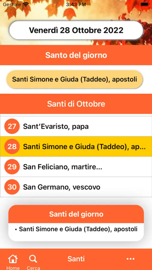 Possibile tramite uno swipe destra e/o sinistra sull'immagine in alto di cambiare tipologia visualizzata fra Onomastici, Santi e Giornate ed Eventi.
