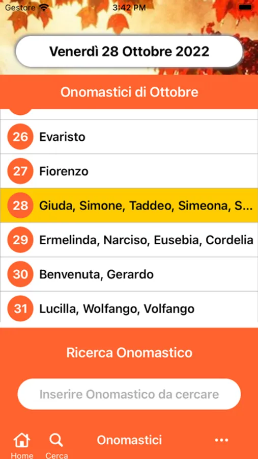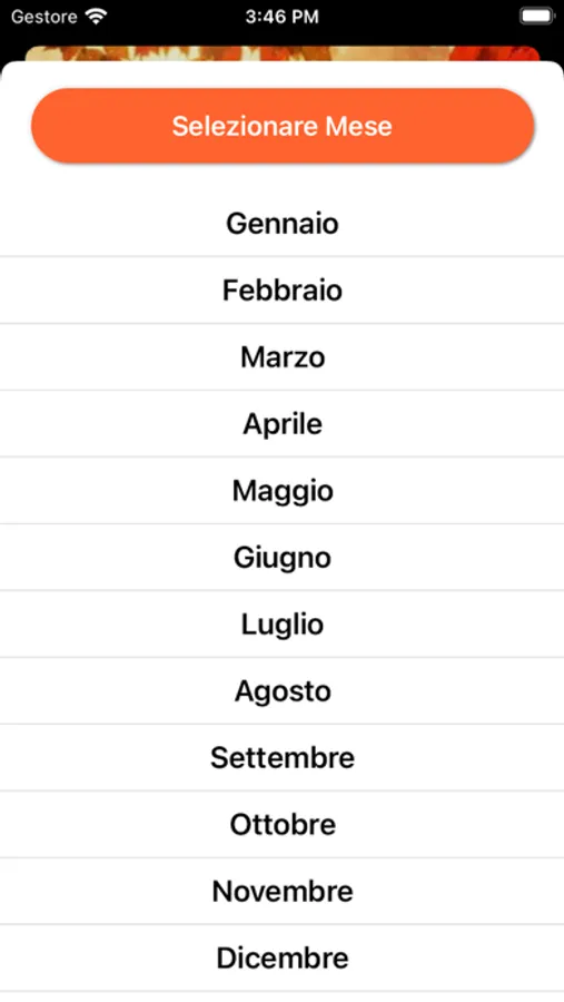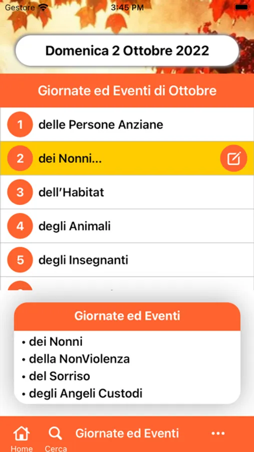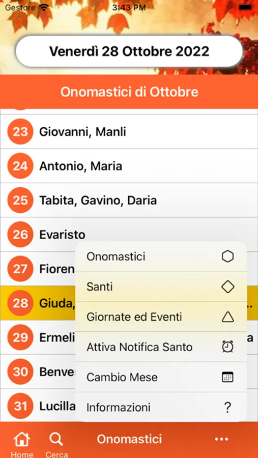 Possibile tramite uno swipe destra e/o sinistra sulla lista di cambiare il mese della tipologia visualizzata fra Onomastici, Santi e Giornate ed Eventi.