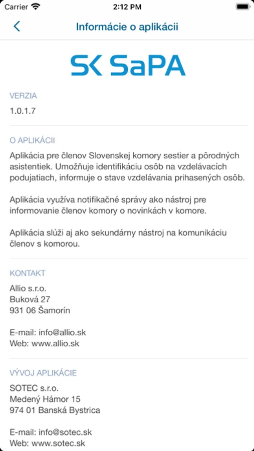 Aplikácia pre členov Slovenskej komory sestier a pôrodných asistentiek.