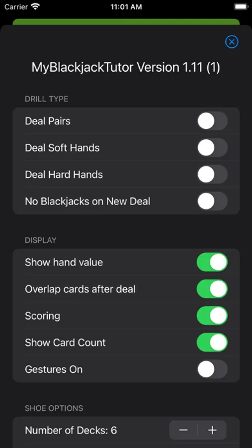 Play game with or without drilling. More drilling options, including pairs only, hard only, soft only, or any combination. Play against the dealer with full dealer play, using shoe with 1-8 decks and user-set shuffle point. Now includes unbalanced card count to allow you to practice and check your card counting skill. Includes tutorial videos to help you learn how to play Blackjack like a pro!