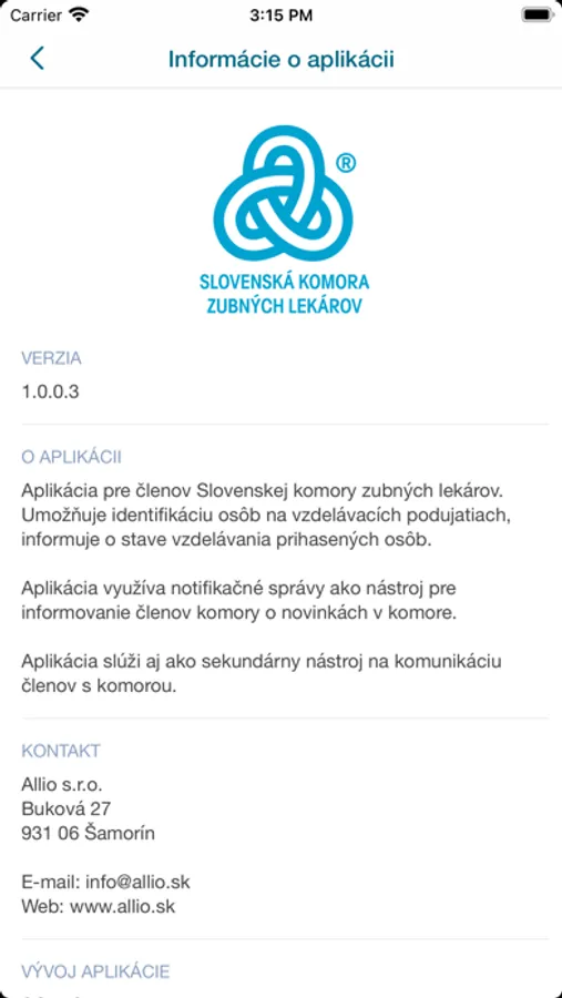 Aplikácia slúži aj ako sekundárny nástroj na komunikáciu členov s komorou.
