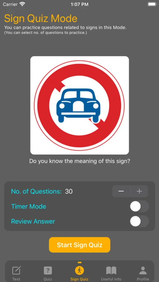 You can practice in “Quiz Mode” & “Sign Quiz Mode” as well at your convenience.