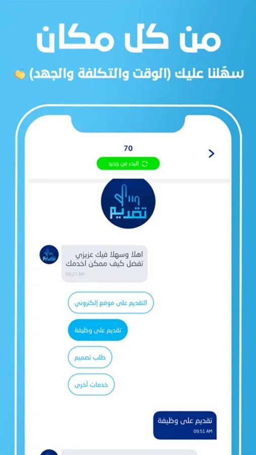 تقديم هو تطبيق احترافي يمكنك من خلاله تنفيذ أعمالك الإلكترونية بأعلى سرعة وأقل تكلفة.