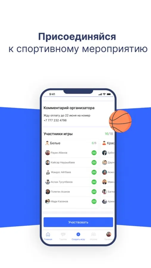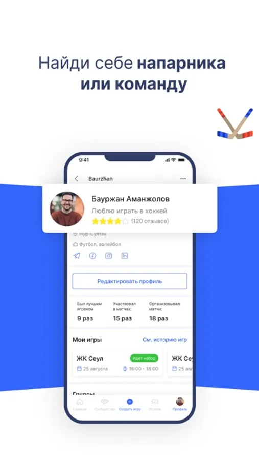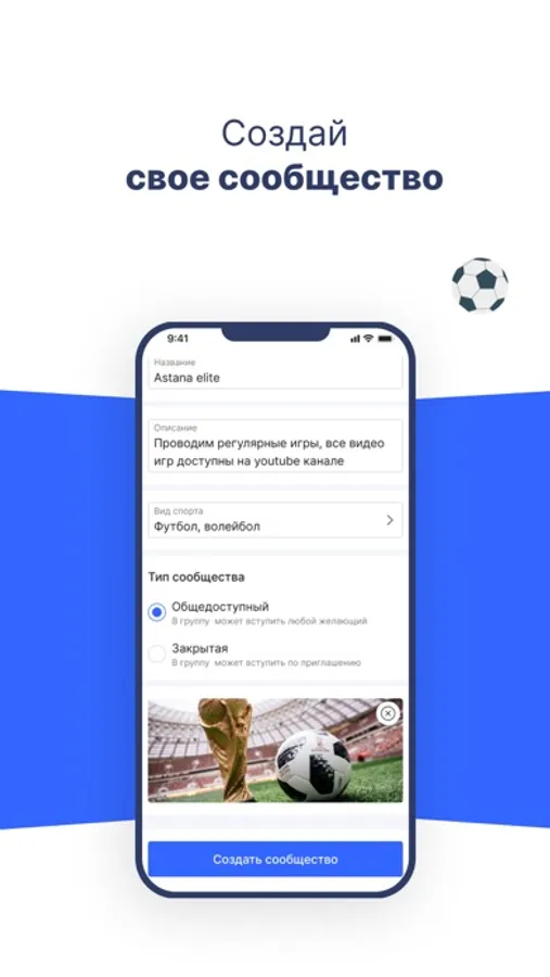 Создавай или вступи в игру, сообщество, спортивное мероприятие. Для ограничения количества потенциальных участников игры/матча, можно создать свое отдельное спортивное комьюнити в виде закрытых сообществ/игр.