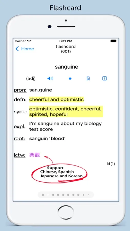 This is a vocabulary-learning app for GRE words. It consists of 600 vocabulary flashcards. Each flashcard contains the definition, audio pronunciation, synonyms, usage example and etymology (root) if available. In addition, it supports multilingual which means it includes translated Chinese, Spanish, Japanese and Korean words for each vocabulary. This feature would be particularly useful for ESL (English as Secondary Language) students. Once a word is done studying, it then can be tested in Quiz. Furthermore, it provides a Hangman word game to make it fun and challenging for students. The app is easy and intuitive to navigate. Also, the flashcard information is concise and easy to read.