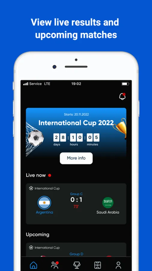 International Cup 2022 is coming! This application is an entertainment platform where football fans can make their predictions on upcoming games and compete against each other.