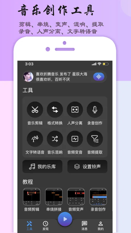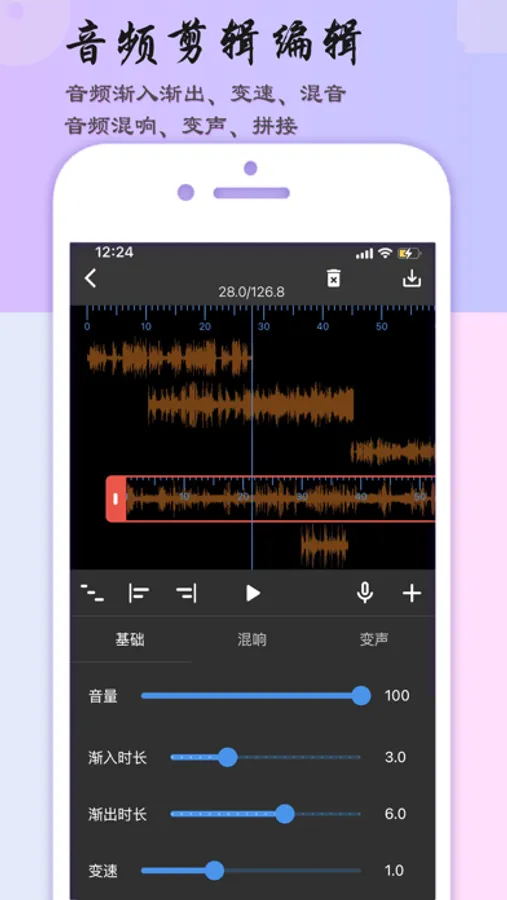 1,音乐编辑-提供音频剪辑、变速、音量、淡入淡出等编辑功能。