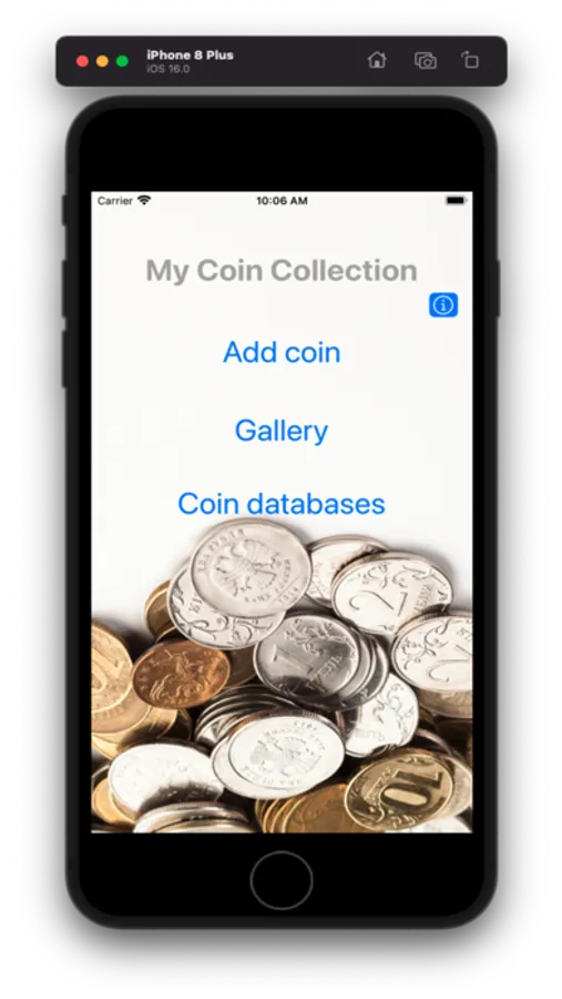 - You can add a coin you own by introducing a name, two photos for front and back, and some details (could be year of emission, state, coin material...), all of which you can later edit.