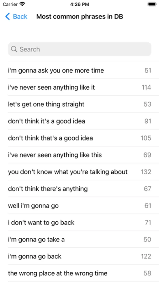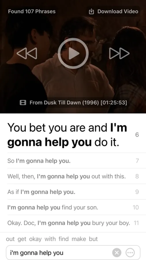 Playphraseme allows you to search for phrases used in movies throughout pop culture. A known website visited by millions of users is now re-developed on the modern technologies of SwiftUI. Playphrase is now in your pocket!