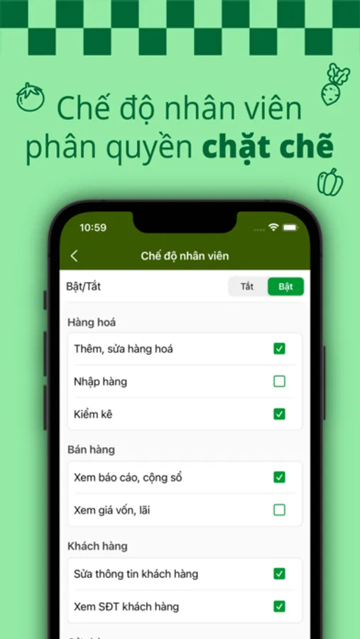 - Phân quyền linh hoạt: quản lý, bán hàng, thủ kho.