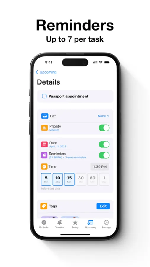 Our app is designed to help you stay on top of your to-do list and ensure that nothing falls through the cracks. With a sleek and modern interface, you can easily view all your upcoming tasks, along with any tasks that are overdue. You can also set reminders up to 7 reminders for each task, so you'll never forget to complete something important.