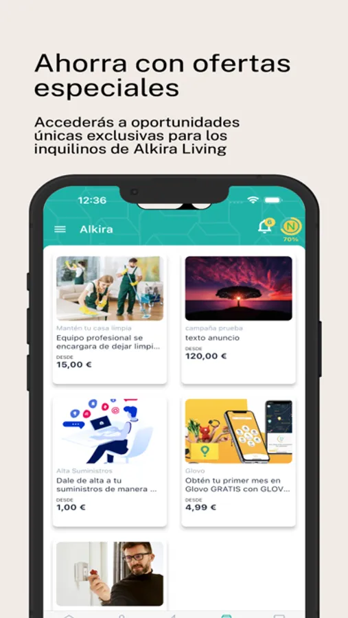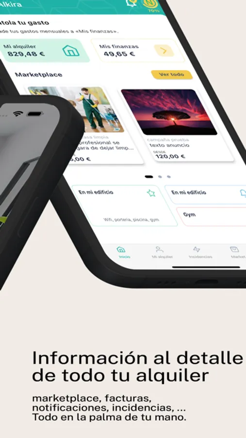 Desde el momento en que firmas el contrato y pasas a ser un inquilino Alkira, podrás descargar nuestra App. A través de ella podrás acceder a toda la información, documentos y recibos relativos a tu alquiler. También encontrará opciones para comunicarte con Alkira en caso de incidencias o consultas, y funcionalidades adicionales como control de gasto o infromación de tu zona.