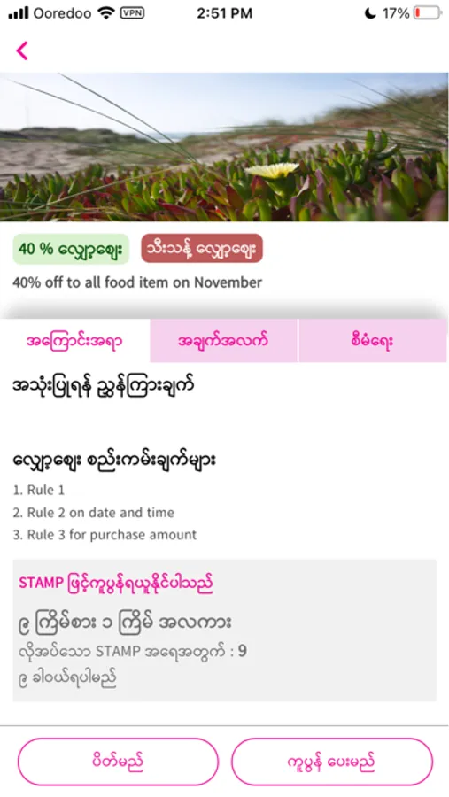 As a digital promotion platform, ShopZay provide uniques features of every business's promotion needs. Business could take the advantage of digital coupon, digital stamp and strategic coupon distribution. Beside ShopZay allow the business to give various kinds of promotion for different scenario at specific time and place.