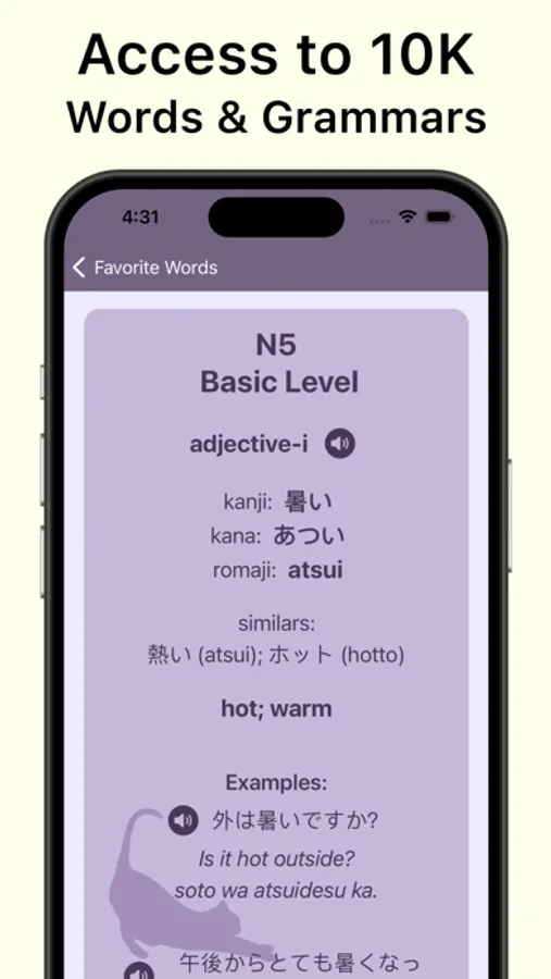 Ready to build your vocabulary? You can start your learning journey by downloading the app! Whether you are a beginner or native speaker, there are words waiting to be discovered by you! You can choose your level or the category that interests you to explore and begin your journey. With the help of the new words, start expressing yourself more precisely and expand your knowledge of Japanese vocabulary!